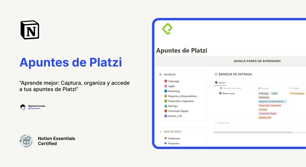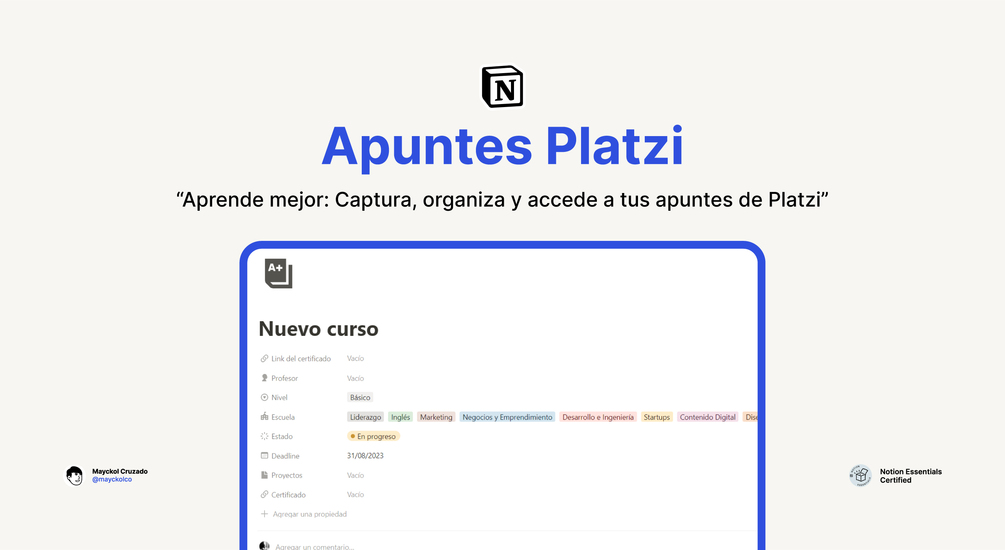- ¿Qué debo hacer una vez que he completado un curso en la plantilla?Una vez que completes un curso, debes cambiar el estado del mismo a "Finalizado" en la plantilla. Además, es recomendable que añadas el enlace al certificado del curso, para tener un acceso rápido y directo a tus logros académicos.